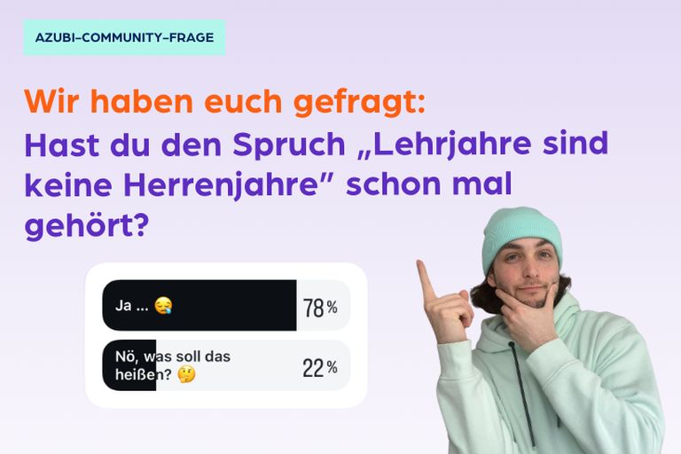 Hast du den Satz „Lehrjahre sind keine Herrenjahre“ auch schon gehört? Vielleicht vom Chef oder der Chefin, den Eltern oder Kollegen? Wir haben unsere Community auf Instagram gefragt und das Ergebnis ist eindeutig: fast 80 Prozent von ihnen kennen diesen Spruch! Aber mal ehrlich, wirklich motivierend klingt der nicht. Und was ist damit überhaupt gemeint?