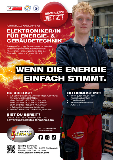 Du lernst, Systeme der Energieversorgung und Gebäudetechnik zu entwerfen. Aber auch das Installieren von Antriebs-, Schalt, Steuer- und Regeleinrichtungen steht auf dem Programm. Dazu kommen dezentrale Energieversorgungsanlagen. Du lernst aber auch, die gesamte Technik rund um Empfangs- und Breitbandkommunikationsanlagen sowie Datennetze zu beherrschen.