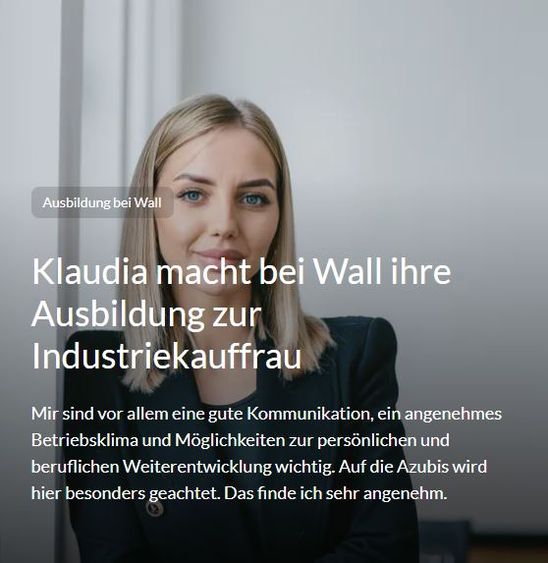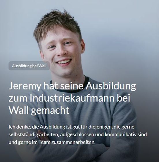 Über den JobBist Du bereit für neue Herausforderungen? Dann starte als Azubi bei Wall und sei von Anfang an mittendrin statt nur dabei. Während Deiner Ausbildung zur/m Industriekauffrau / Industriekaufmann (m/w/d) unterstützt Du uns in vielfältigen Abteilungen und Aufgabenbereichen und wirst zum Allrounder im kaufmännischen Bereich.