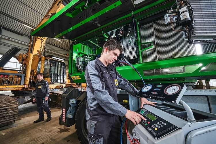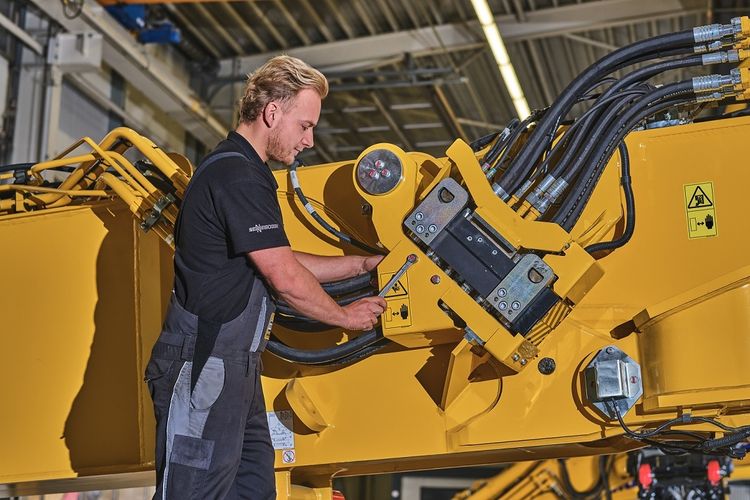 Die Maschinengrößen erstrecken sich vom kleinen Minibagger für den Landschaftsbau bis hin zu großen Muldenkippern, die z.B. in Steinbrüchen eingesetzt werden. Hinter dem starken Eisen steckt modernste Technik, in der Hydraulik, Elektronik und Antriebstechnik eng miteinander verzahnt sind. In unserem Unternehmen gibt es sogar eine eigene Entwicklungsabteilung für Sonderanfertigungen. Diese rüstet die Maschinen ganz nach individuellen Kundenwünschen auf. Bei uns arbeiten derzeit über 1.100 Mitarbeiter und Mitarbeiterinnen in 33 Betrieben und unsere Ausbildung ist ein ganz wichtiger Wachstumsfaktor für unser gesamtes Unternehmen.