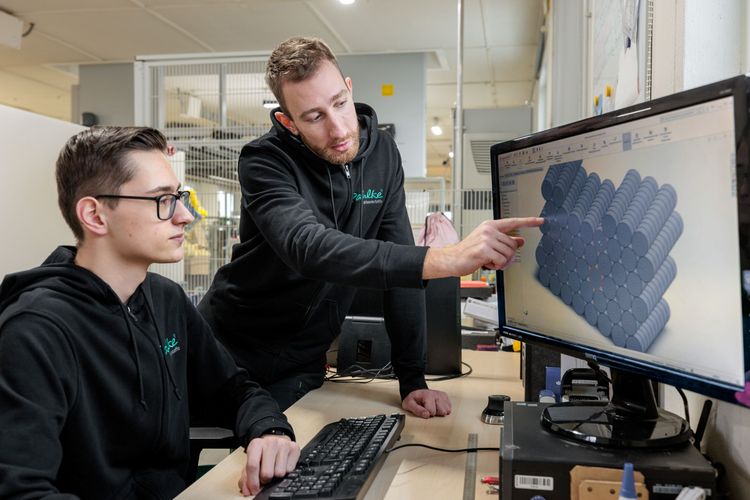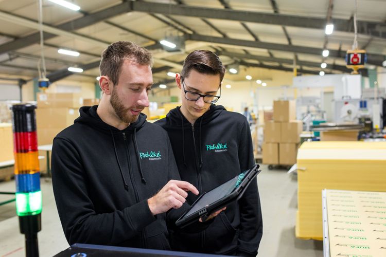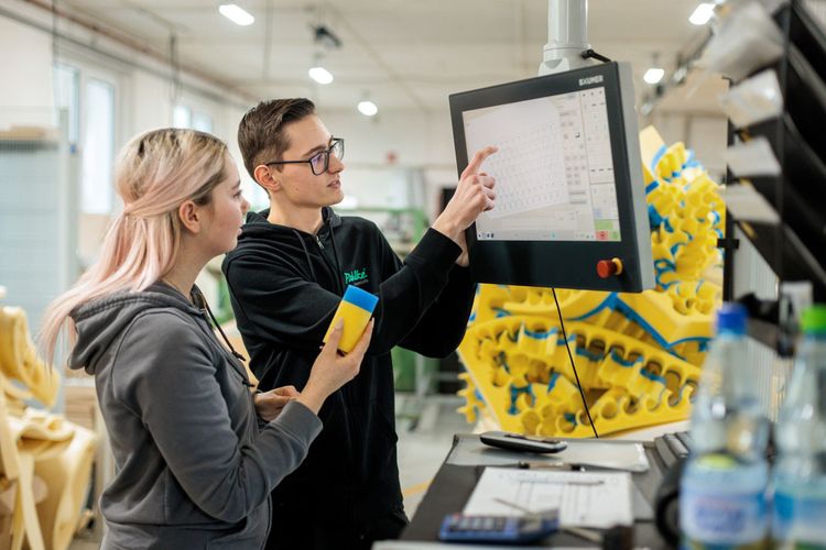 Schon früh bist du richtig mit dabei im täglichen Fertigungsablauf: Maschine in Betrieb nehmen, für den Fertigungsauftrag einstellen und loslegen mit der Fertigung. Dann prüfen, nachsteuern falls erforderlich, verpacken und dokumentieren