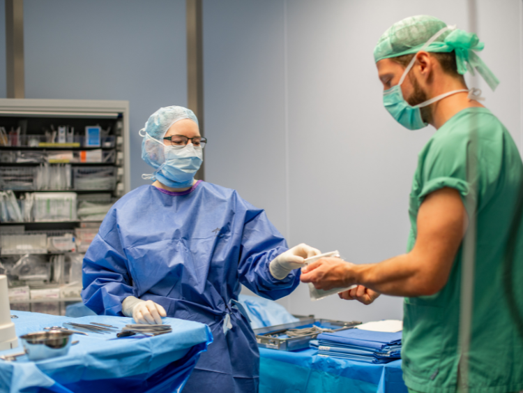 Instrumentieren bei spannenden OPs, z. B. in der Tumorchirurgie, beim Einsatz von Knieprothesen, bei Lebertransplantationen oder Kaiserschnitten