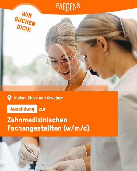 Dir liegt die Gesundheit deiner Mitmenschen am Herzen und du möchtest deine fachlichen und menschlichen Fähigkeiten in einem familiären Arbeitsumfeld zum Besten entwickeln? Herzlich Willkommen bei uns. Herzlich Willkommen bei Paeßens Zahnwelten! Auch über die eigentliche Ausbildung hinaus fordern und fördern wir unsere Mitarbeiter mit zahlreichen Fortbildungen, die wir dir als großer Betrieb bieten können.