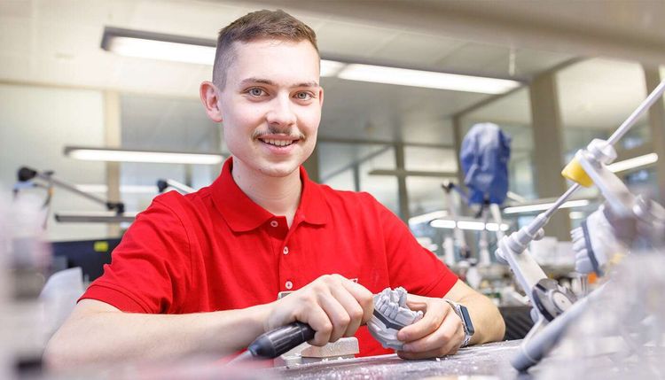 Als Zahntechniker/-in fertigst Du für unsere Kunden/Zahnärzte und deren Patienten Zahnersatz an. Arbeitsgrundlage sind Abdrücke von Zähnen des Patienten und Auftragsbeschreibungen. Dabei kann es sich um kleinere Arbeiten wie Kronen oder Brücken, um ein komplettes künstliches Gebiss oder komplexe Zahnersatzlösungen auf Implantaten handeln. Auch die digitale Komponente kommt in diesem Berufsbild nicht zu kurz und entwickelt sich stets weiter. Computergesteuerte Software und 3D-Scans unterstützen die Zahntechniker/innen bei der Herstellung von Zahnersatz und machen sie noch präziser.