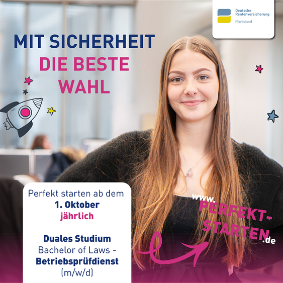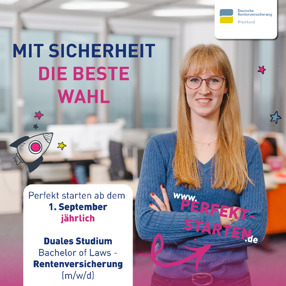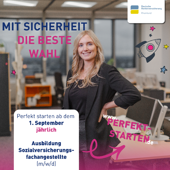 Die Deutsche Rentenversicherung Rheinland sucht zum 1. September 2026 Auszubildende als