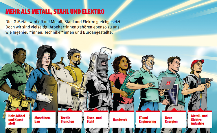 Die IG Metall ist mit rund 2 Mio. Mitgliedern eine der größten Gewerkschaften weltweit. Sie vertritt die Interessen der Beschäftigten in der Metall- und Elektroindustrie, in der Eisen- und Stahlindustrie, in der Textil- und Bekleidungswirtschaft und in der Holz- und Kunststoffbranche. Im Non Profit Bereich zählt sie zu den größten Organisationen in Deutschland.
