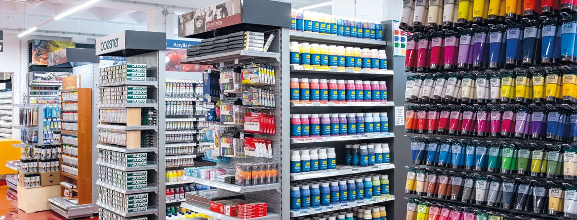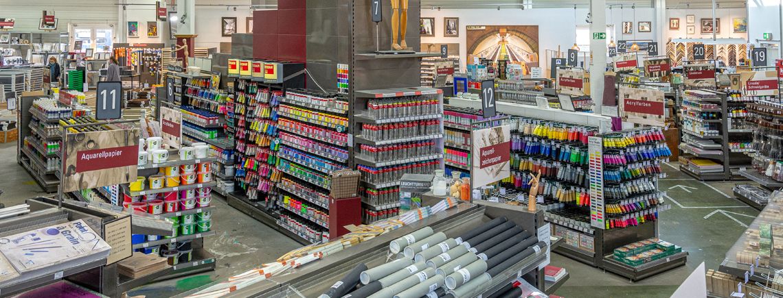 Seit über vierzig Jahren unterstützen wir Künstlerinnen und Künstler bei ihrer Arbeit – mit gutem Material, fairen Preisen und echter Leidenschaft für Kunst. Was klein begann, ist heute einer der führenden Anbieter für professionelles Künstlermaterial in Europa mit über 40 Standorten, einem starken Online-Shop, einem internationalen Versandservice und einem Sortiment von mehr als 26.000 Artikeln. Farben, Pinsel, Keilrahmen, Papier, Bücher, Rahmen – alles, was Kunst braucht, findet hier seinen Platz.