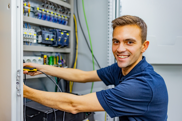 Als Elektroniker für Gebäude- und Infrastruktursysteme installierst, überwachst und optimierst du gebäudetechnische Infrastrukturen z.B. Lüftungs-, Heizungs-, Elektrizitäts- und Sicherungssysteme.